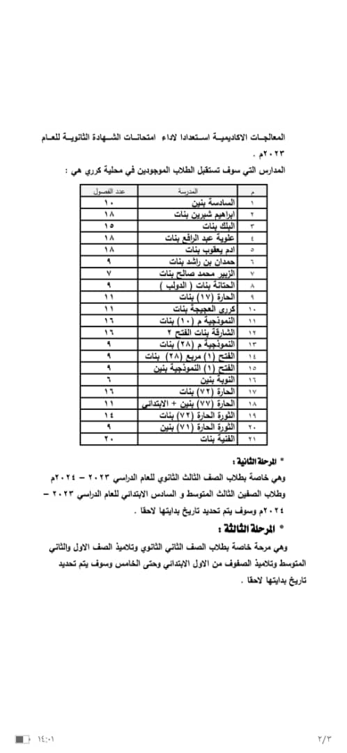 وأوضحت الوزارة ، أن هذه المرحلة خاصة بطلاب الصف الثالث الثانوي فقط.