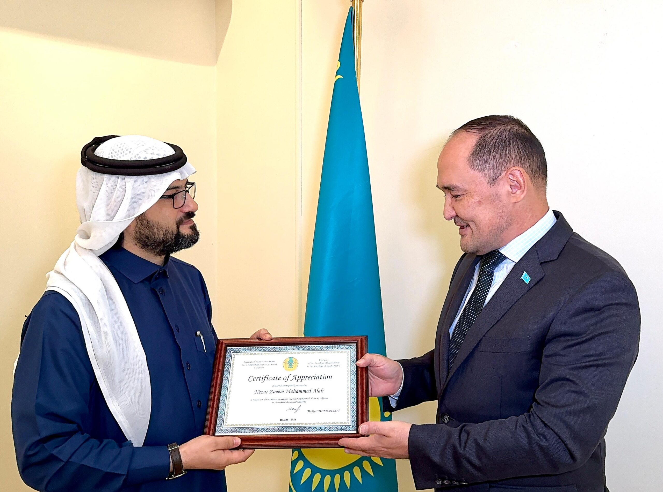 سفارة كازاخستان تكرم الإعلامي نزار العلي بجائزة التميز الإعلامي