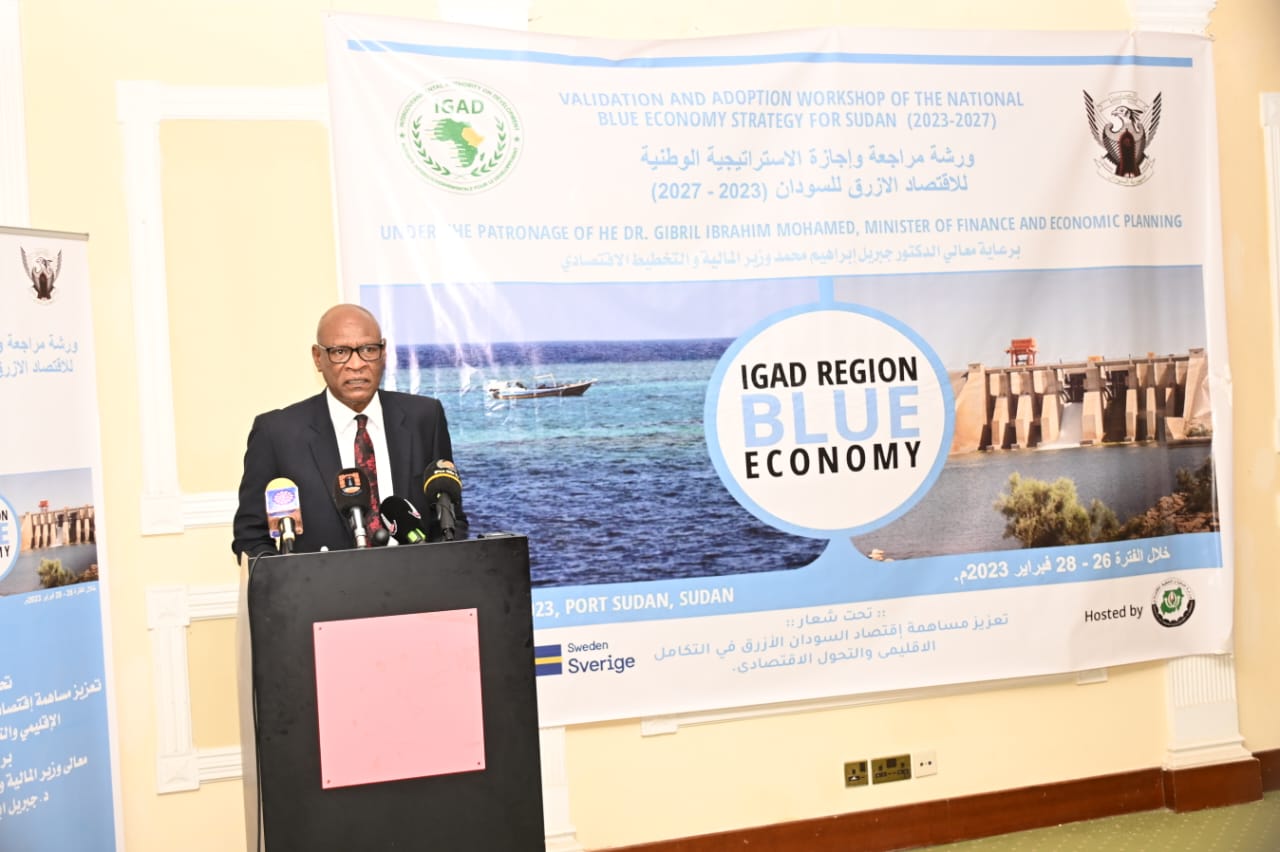واختتم الجلسة الافتتاحية الاستاذ محمد بشار محمد وكيل التخطيط بوزارة المالية والتخطيط الاقتصادي مرحبا بالمشاركين والحضور وتقدم سيادته بالشكر الجزيل للحكومة ولاية البحر الأحمر لاستضافة هذه الورشة الهامة وتذليل كأفة الصعاب لإنجاحها وكذلك اشاد بقيادات منظمة الايقاد لدعمهم المتواصل. وأكد الاهتمام المتعاظم الذي توليه وزاره المالية والتخطيط الاقتصادي لمشاريع وبرامج الاقتصاد الازرق .
