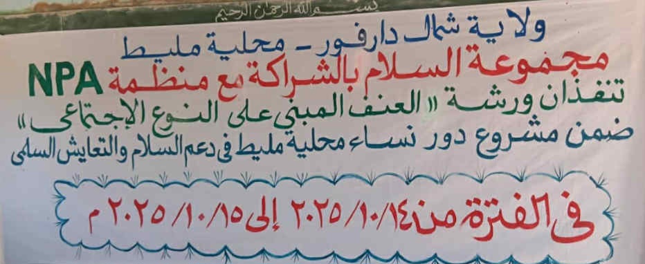 إنطلقت صباح اليوم “الثلاثاء” بمحلية مليط فعاليات الورشة التدريبية عن “العنف المبني على النوع الإجتماعي” والتي نظمتها مجموعة السلام بالتعاون مع منظمة NPA