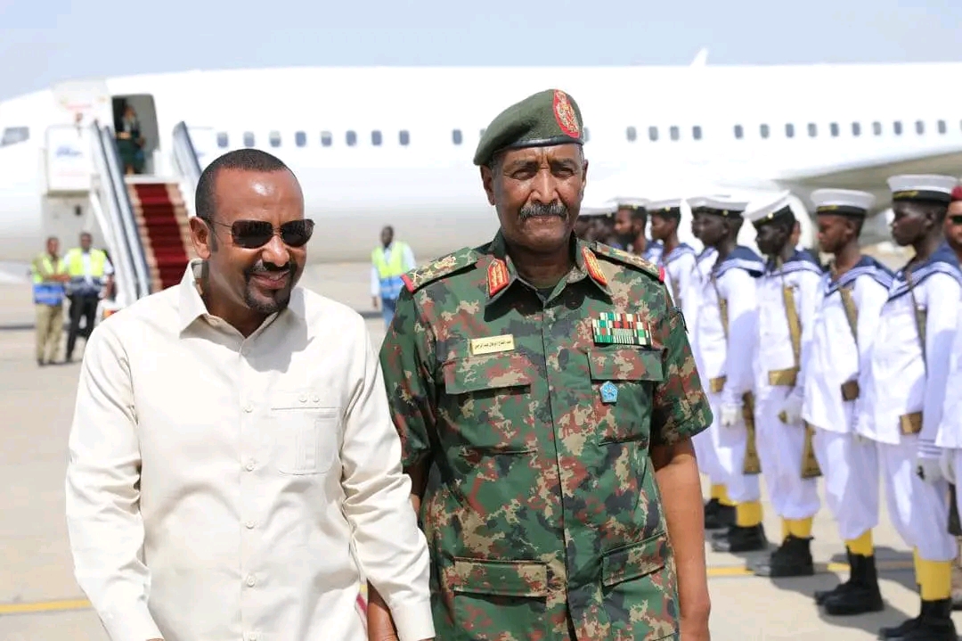 البرهان يستقبل رئيس الوزراء الإثيوبي آبي أحمد فى مطار بورتسودان
