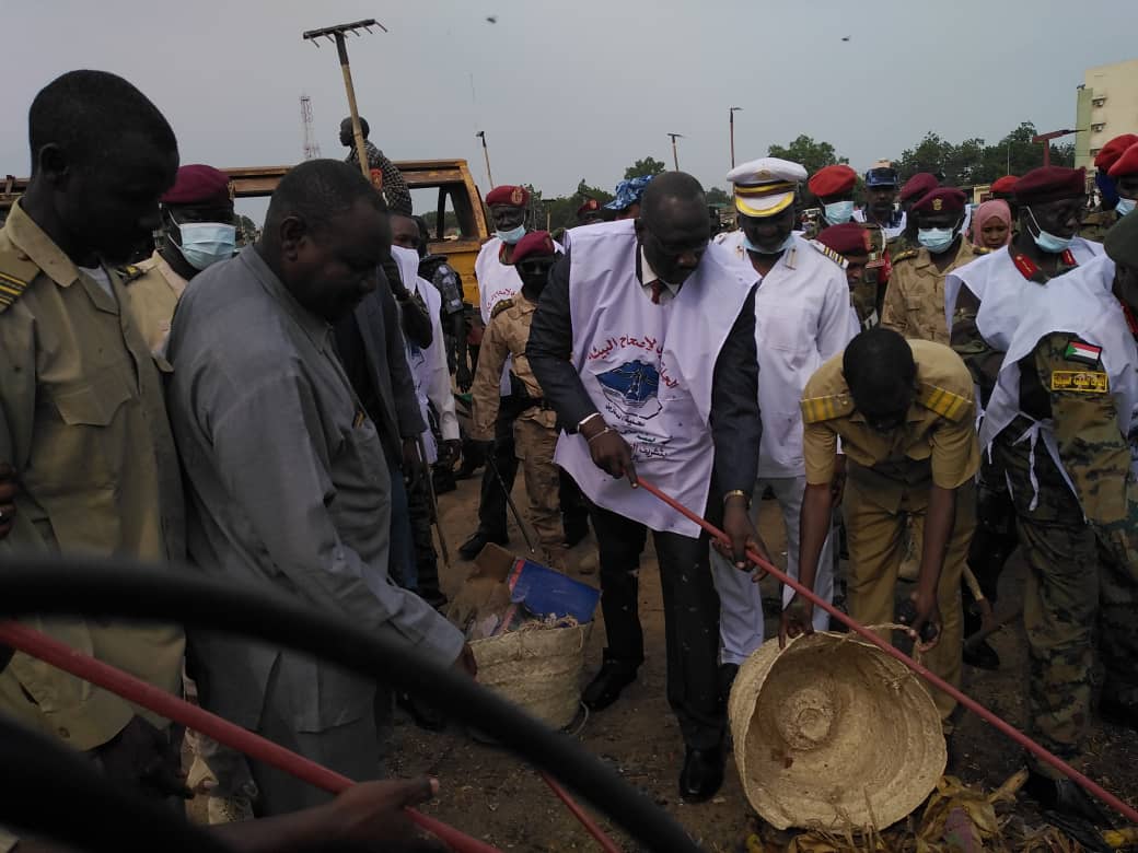 دشن الفريق الركن أحمد العمدة بادي ، حاكم إقليم النيل الأزرق ، الحملة الكبري لنظافة أسواق الدمازين ، حاضرة الإقليم .
