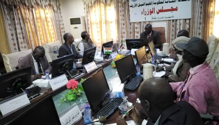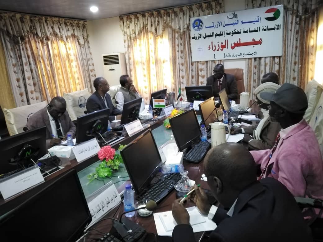 من جهته عقد مجلس وزراء حكومة إقليم النيل الأزرق ، اليوم ، جلسة فوق العادة بقاعة الشهيد حذيفة محمد عثمان ، بالأمانة العامة لحكومة الإقليم ، برئاسة الفريق أحمد العمدة بادي ، حاكم الإقليم .