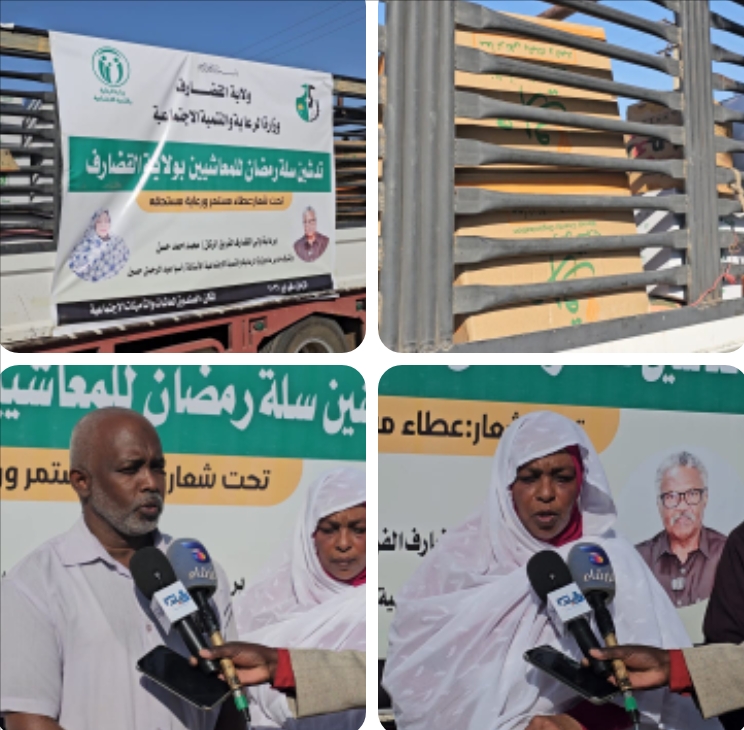 فيما ثمّن ممثل مدير المعاشات والتأمينات الاجتماعية بالولاية الأستاذ صالح محمد موسى، جهود والي القضارف واللجنة المكلفة بحصر المعاشيين، مشيراً إلى أن ولاية القضارف تُعد أول ولاية تبادر بتنفيذ برنامج سلة رمضان لدعم المعاشيين، مؤكداً أن عمليات التوزيع ستتواصل لتشمل جميع محليات الولاية تباعاً.