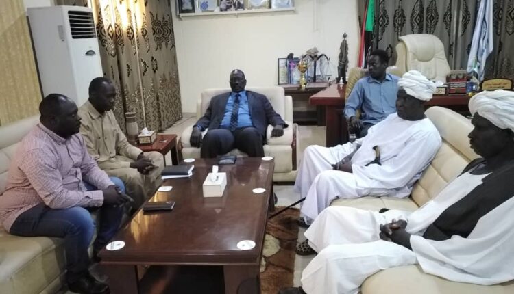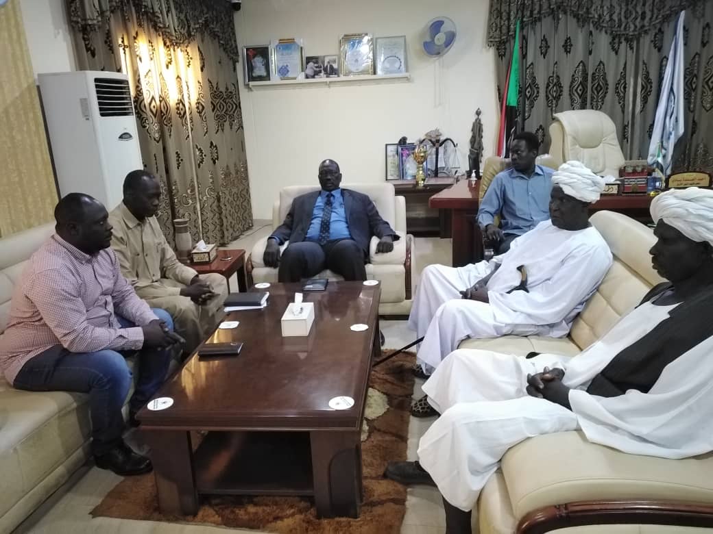 جاء ذلك لدي لقاءه ، بمكتبه ، اليوم ، بالأستاذ أحمد حسين مطر ، المدير التنفيذي لمحلية باو ، يرافقه ممثل لجان التغيير والخدمات بمنطقة مقنزا ، وممثل شركة تنامي العاملة فى مجال معالجة مخلفات التعدين بمنطقة مقنزا بمحلية باو ، وذلك بحضور الناظر عالم مون جابر .