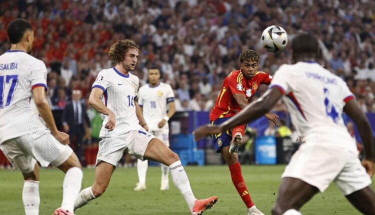 بدأت المباراة في المدرجات قبل أرضية الملعب كانت المبادرة الأولى لمهاجم فرنسا ” كولو مواني” بتسجيله لهدف التقدم عند الدقيقة التاسعة منذ بداية الشوط الأول، لكن لم يصمت المنتخب الإسباني وواصل هجماته التي أسفرت عن هدف التعادل بطريقة خرافية وجميلة عن طريق الجناح اليافع ” لامين يامال” وذلك عند الدقيقة ال “21” وبعدها بخمس دقائق بادرت إسبانيا بالتقدم مرة أخرى لكن عن طريق المهاجم “داني أولمو” .