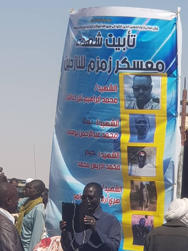 تم أمس ، تأبين الشهداء فى معسكر زمزم ، بتشريف كل من أمين عام حكومة إقليم دارفور ، توحيدة والإدارات الأهلية للقري المجاورة ، طويلة ، وتابت ، وكلمندو ، وابوزريقة ، وألاونا ، وجآؤر ،ومحليات أخري.