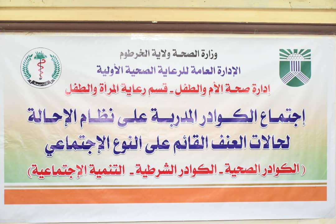 جاء ذلك خلال الإجتماع الأول ، الذي إنعقد بمحلية جبل أولياء ، أمس ، للتقييم والمتابعة للكوادر المدربة على نظام الإحالة لحالات العنف القائم على النوع الإجتماعي ، والذي تم تكوينه فى العام 2020م ، وبشراكة بين قطاعات الصحة ، والشرطة ، والتنمية الإجتماعية ، وبدعم من صندوق الأمم المتحدة للسكان (يونيفا ).