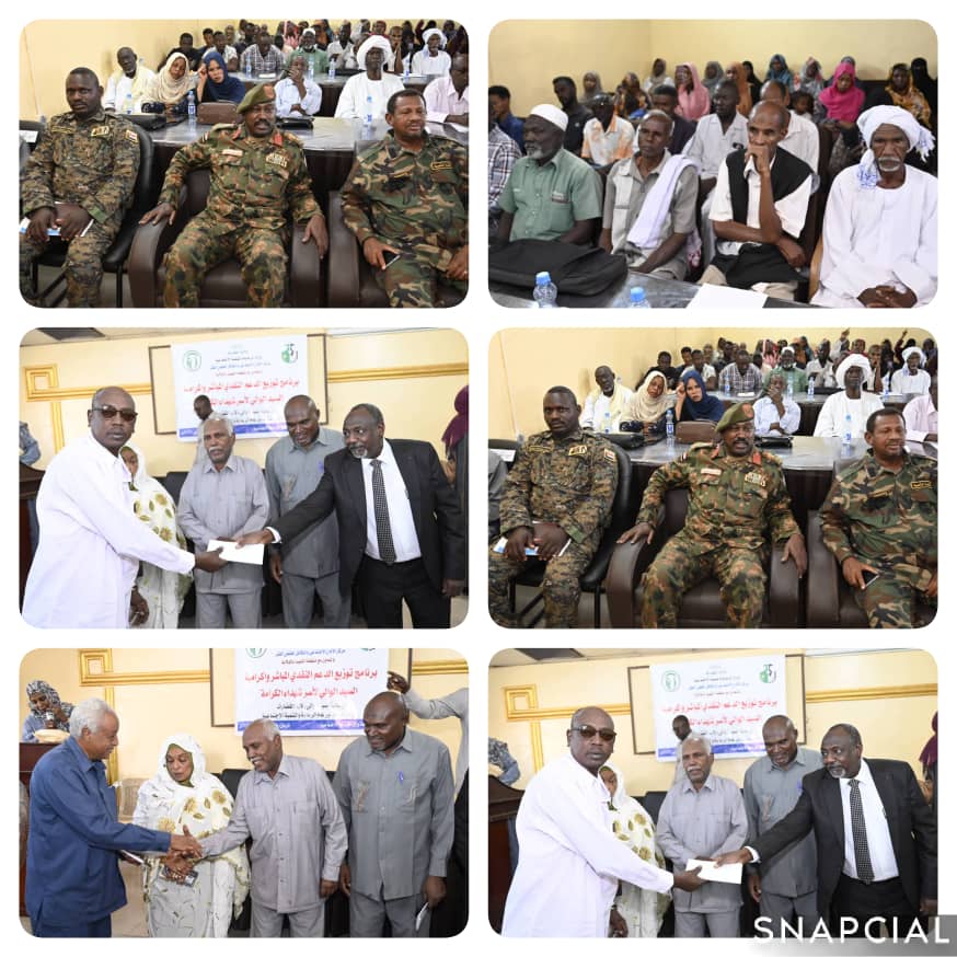 جاء ذلك خلال مخاطبته اليوم بقاعة وزارة الرعاية الاجتماعية، في فعالية برنامج توزيع الدعم النقدي المباشر وإكرامية والي الولاية لأسر الشهداء، والذي نُفذ عبر مركز الأمان الاجتماعي والتكافل وخفض الفقر بالوزارة، بالتعاون مع منظمة الشهيد، وبحضور عدد من القيادات والمسؤولين.