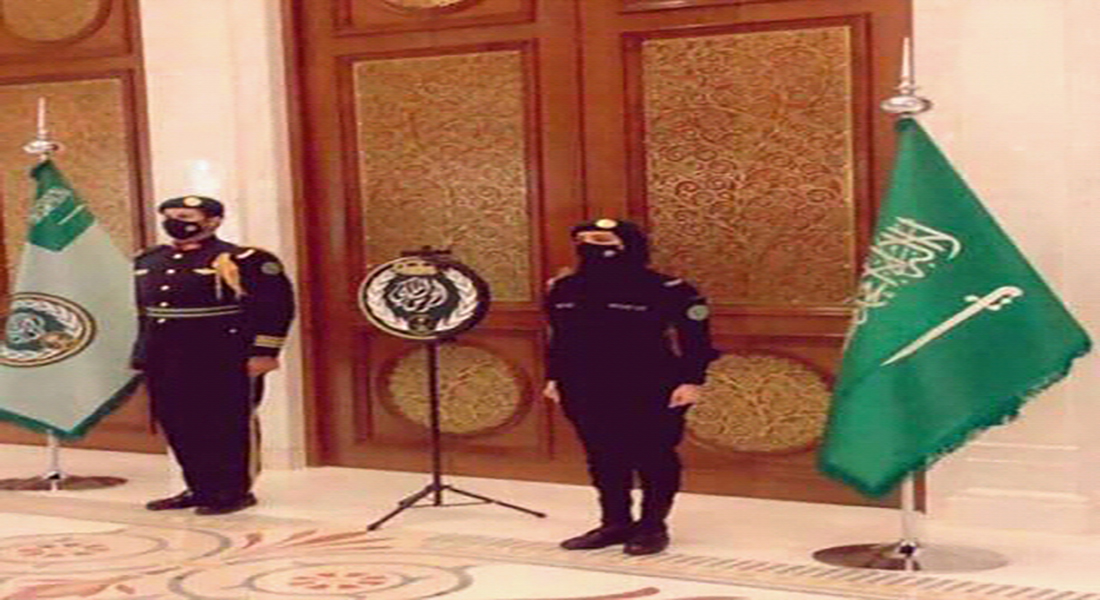 ضجت وسائل التواصل الاجتماعي في السعودية بتداول صورة ظهرت فيها إمرأة تقف بجانب زميلها، وهما يلبسان الزي الرسمي للحرس الملكي السعودي، ويقفان أمام بوابة قيل أنها تتبع لإحدى بوابات القصر الملكي في الرياض ، ونشرت الصورة بواسطة حساب قيل انه لأحد أفراد الأسرة المالكة في السعودية.