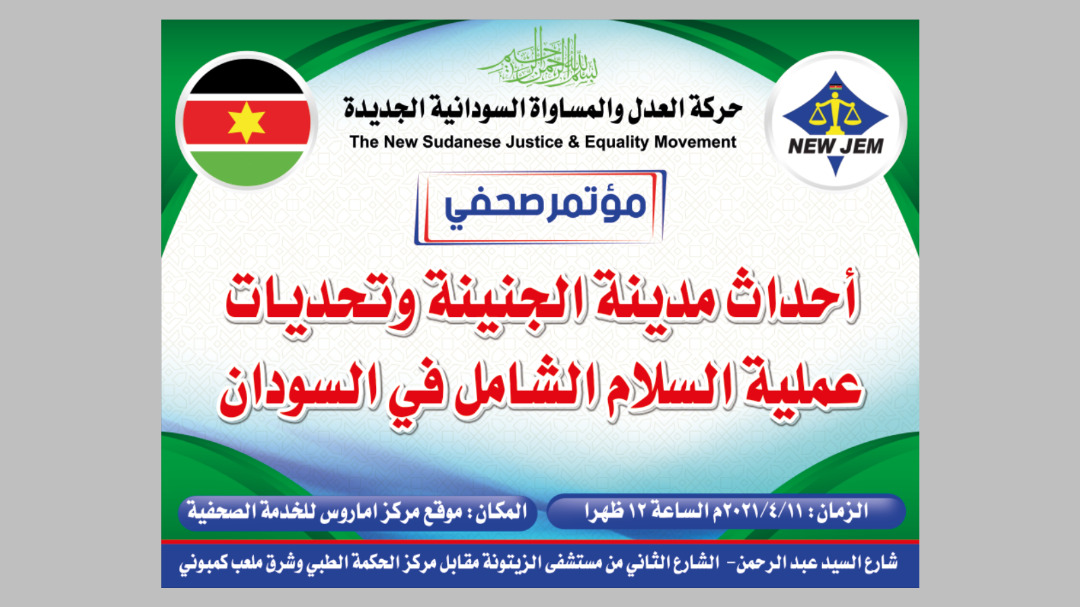 ودعت حركة العدل والمساواة السودانية الجديدة حكومة الفترة الإنتقالية الكشف عن الجهات التي خططت لأحداث مدينة الجنينة.