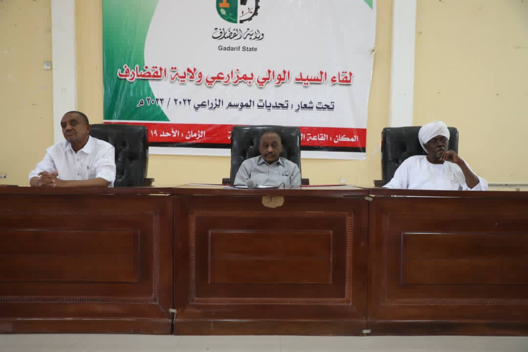في لقاء جامع مع والى القضارف المكلف الأستاذ محمد عبدالرحمن محجوب اليوم بقاعة أمانة الحكومة واللجنة الولائية لإنجاح الموسم الزراعي الماثل حول مناقشة التحديات التى تواجه الموسم الزراعي.