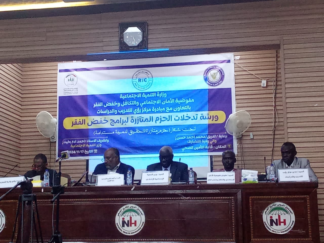 نظمت مفوضية الأمان الاجتماعي والتكافل وخفض الفقر بالمركز ، بالتعاون مع مركز رؤي للتدريب والدراسات بولاية القضارف ، بقاعة التأمين الصحي بالقضارف ، ورشة الحزم المتآزرة لبرنامج خفض الفقر