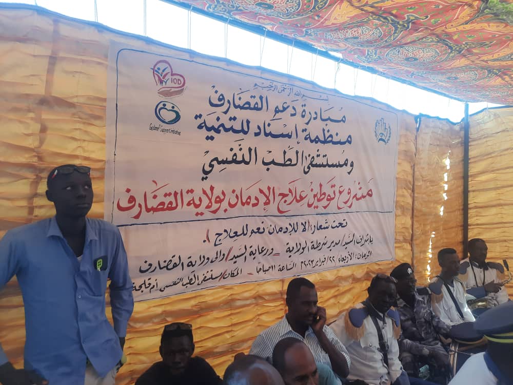 خاطب والى القضارف المكلف الاستاذ محمد عبدالرحمن محجوب ، بساحة مستشفى ام قلجة للطب النفسى ، اليوم ، البرنامج الذى نظمته مبادرة دعم القضارف بالتعاون مع منظمة اسناد ومستشفى الطب النفسى ، ضمن المشروع الذى تقوده تلك الواجهات لتوطين علاج الادمان داخل الولاية ، باشراف مدير شرطة الولاية ، وتحت رعاية والى القضارف ، وبحضور عدد من المسؤولين بالولاية وجامعة القضارف وقيادات ومواطنى قرية ام قلجة .
