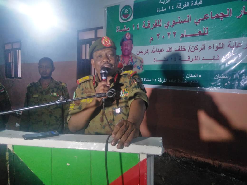 وقدم قائد الفرقة ، الشكر لكل الذين حضروا إفطار الفرقة من أعضاء الجهاز التنفيذي لحكومة الولاية ، ولجنة الأمن ، والإدارات الأهلية ، ولجنة وقف المصالحات في كادوقلي الكبري .