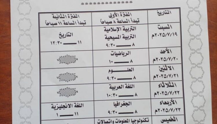 وزارة التربية والتعليم بنهر النيل تعلن عن موعد امتحانات الشهادة الابتدائية للعام 2025م