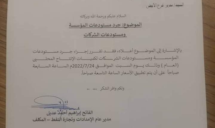 وأشار التعميم ، إلى أن زيادة أسعار المحروقات ، جاءت نتيجة المراجعة التى تجريها الوزارة مع شركات الإستيراد الحر والخاص ، فى ظل التغيرات التى تطرأ فى السوق العالمي للمحروقات .