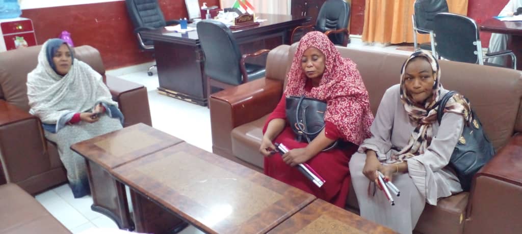 إلتقت الدكتورة ماجدة عبدالله علي ، مدير عام وزارة الصحة الوزير المكلف بنهرالنيل ، بمكتبها ، الاستاذة زينب اسحاق ادريس رئيس منظمة بقعة أمل للاشخاص ذوي الإعاقة ترافقها الدكتورة فاطمة السر والاستاذة وجدان السر هاشم عضوتا المنظمة